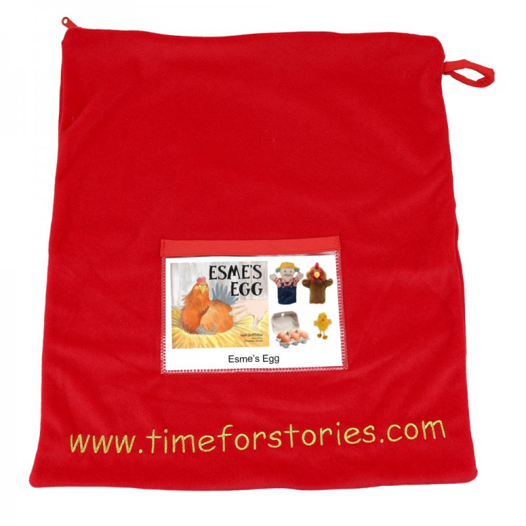 - Story collection comes complete with book, 1 glove puppet Hen, 1 glove puppet Farmer, 1 finger puppet chick, 1 egg box, 6 plastic eggs and a zip top red velour storage bag