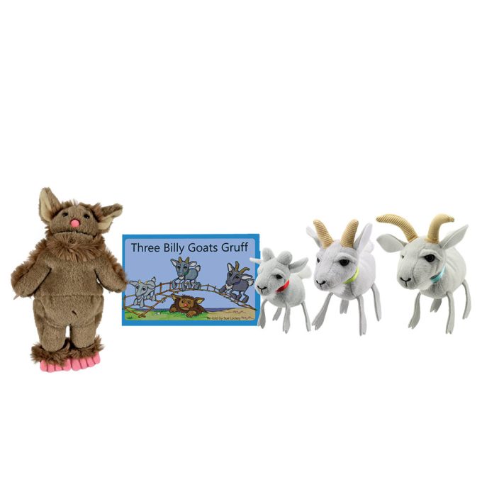 - Bring the magic of storytelling to life with the Three Billy Goats Gruff Traditional Story Set. Featuring a large 'Walking' Troll puppet alongside three Billy Goats finger puppets, each of which has their own coloured collar. You can put your fingers in the Trolls legs to make him walk, run, jump and more! This versatile and imaginative set creates huge amounts of fun. Encourages language and communication development in addition to fine motor skill development and creative play.
