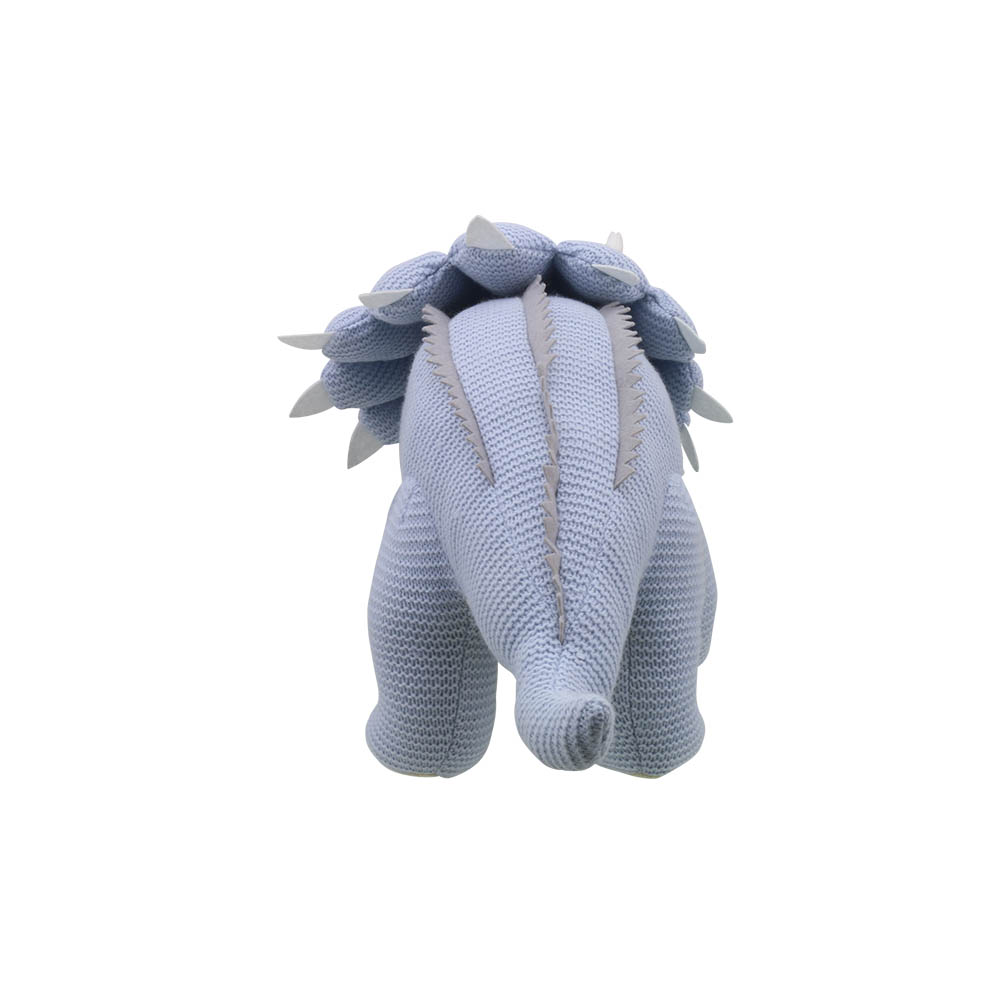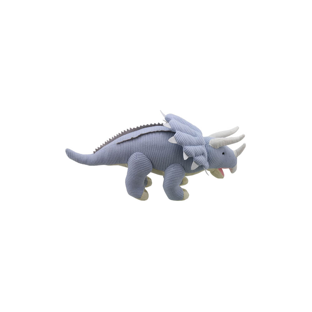 - Add a touch of blue charem with our small knitted Triceratops. Its charming design and cozy feel make it a playful companion for all ages. These look as good in playrooms and nurseries as they do on display and are just asking to be played with!